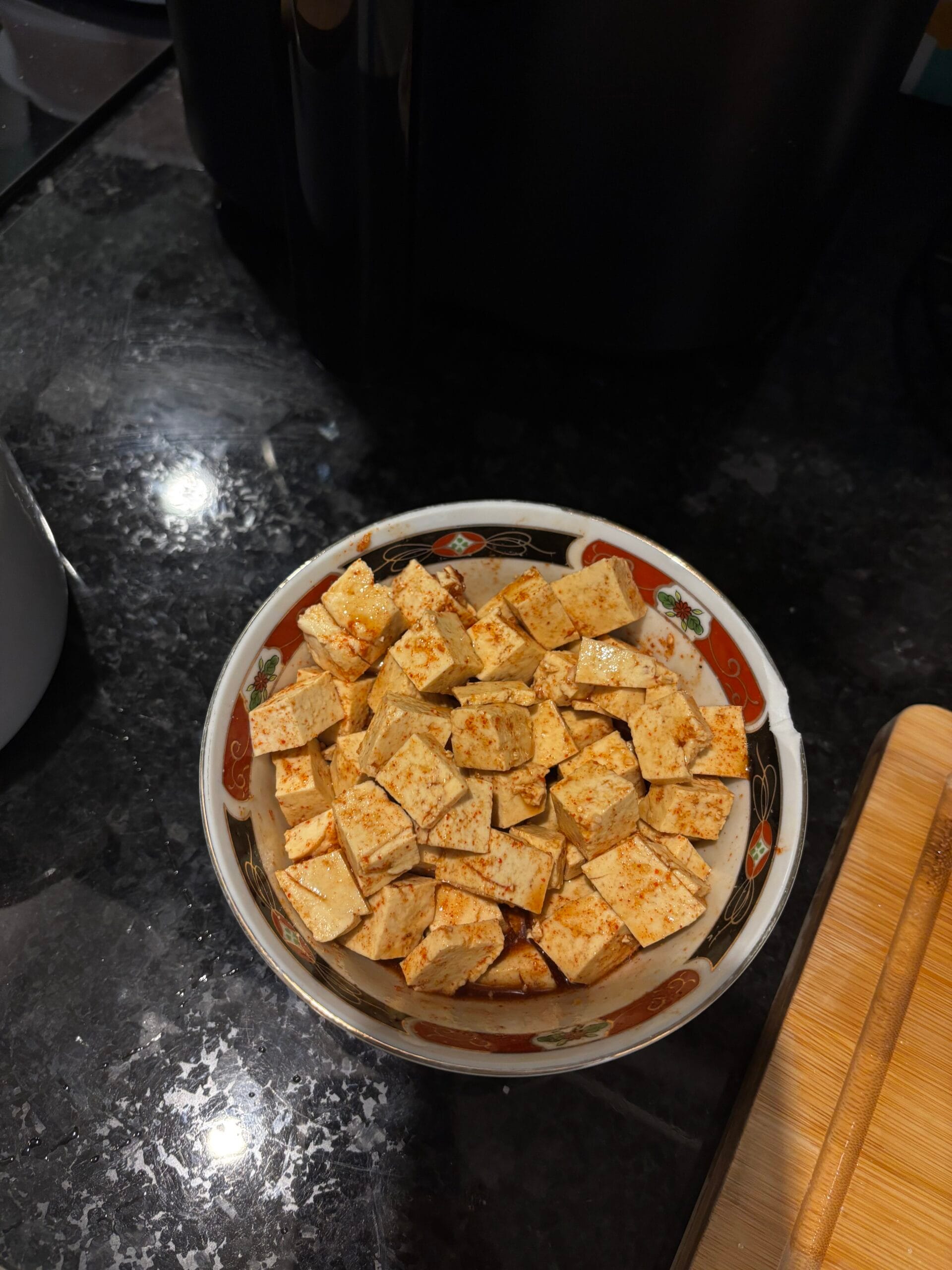 Hoje o jantar vai ser com tofu, adoro! Já está temperado ✨