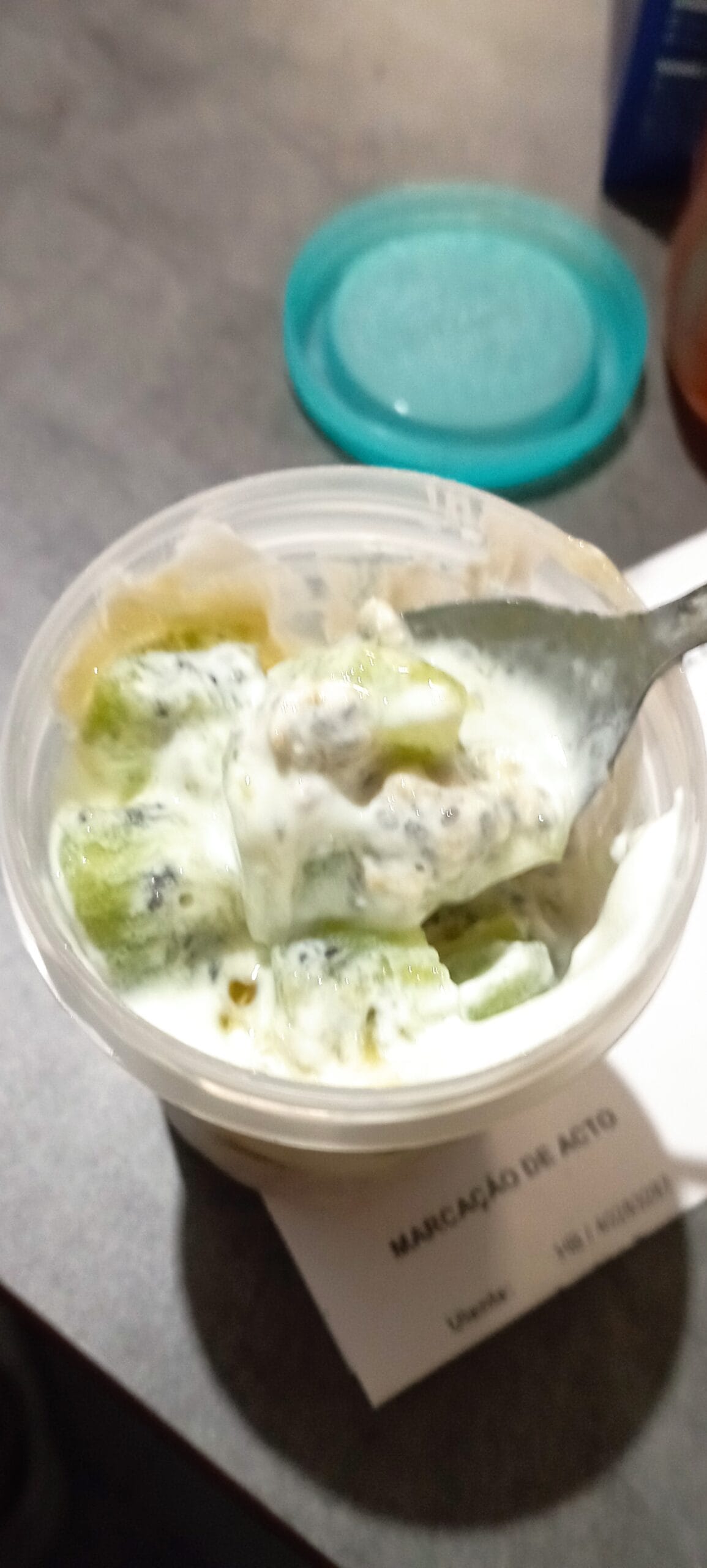 Lanche da tarde: Aveia, chia, iogurte natural, um pouco de leite, kiwi e mel para adoçar 😋